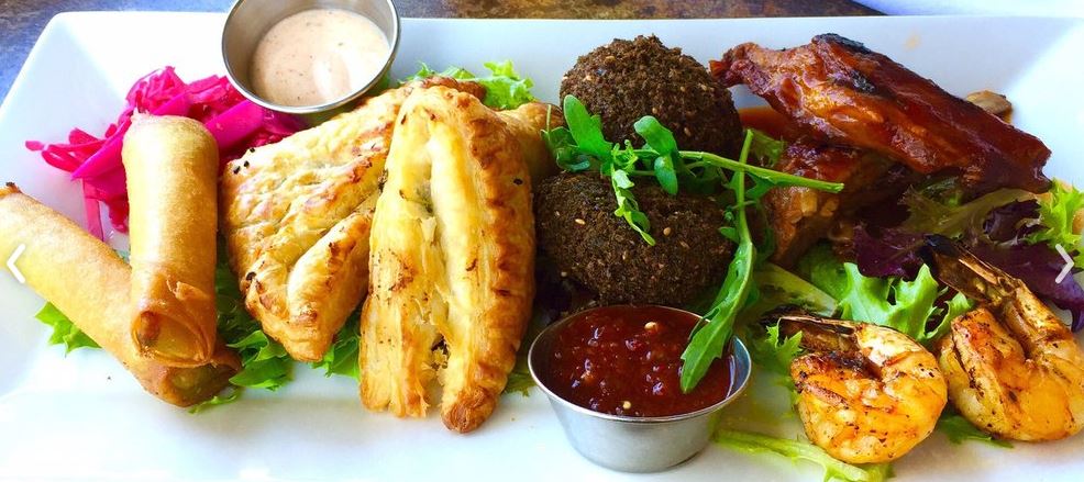 Enjoy this appetizing selection from one of our wonderful, local, Mediterranean restaurant neighbors. This is considered a heavy appetizer selection. And is meant to be enjoyed as finger food.